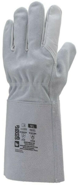 Kecske színbőr tenyér és hasítékbőr hátrész a szikrák elleni védelemre teljes kecske színbőr tenyér és hasítékbőr hátrész a szikrák elleni védelemre para-aramid szálas varrás, gumírozott hátrész 15 cm hosszú biztonsági mandzsetta hasított bőrből kényelmes és fogásbiztos kialakítás antisztatikus tulajdonság 60 pár/karton MÉRET: 8, 9, 10 és 11-es Minősítés