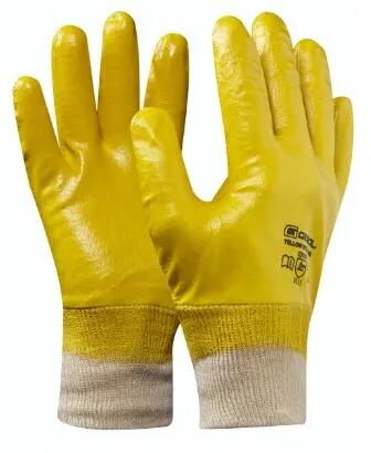 Munkavédelmi nitril kesztyűk SÁRGA NITRIL PLUS 10-es méret - bliszter Nitril-bevont pamutkesztyű. Tartós olajok és zsírok.