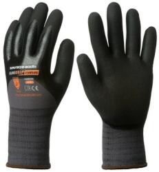 szürke nylon-spandex alapanyagú kesztyű ökölcsontig fekete nitril mártás + a tenyerén fekete Sandy csúszásbiztos nitril réteg könnyű, kiemelten komfortos, teljesen kézre simuló formai kialakítás, magas kopásállósággal és továbbszakítóerő elleni védelemmel, kiemelt csúszásbiztossággal nedves környezetben is finom, 15-ös kötés, gumírozott, rugalmas mandzsetta szél