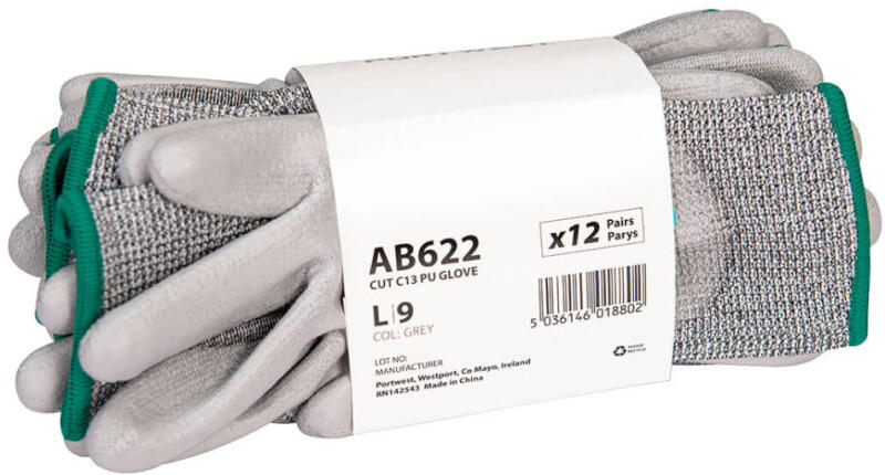 C szintű vágásbiztos kesztyűnk tökéletes védelmet nyújt a vágások és éles tárgyak ellen. A varrás nélküli bélés további kényelmet és kézügyességet biztosít, míg az EN407 1. szintű kontakthő elleni védelem rövid távú védelmet nyújt akár 100°C-os hőmérséklet ellen is. Ez a kesztyű a zászlóshajó A622 kesztyűnk egyszerűsített változata, csökkentett csoma