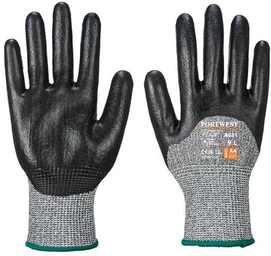 A legmagasabb vágásbiztosságot garantáló, olajos munkakörnyezetben is használható, habosított nitrillel bevont védőkesztyű, mely kiváló tapadást biztosít nedves és száraz körülmények között egyaránt. D szintű vágásbiztosság. Kötési sűrűség 13. Ökölcsontig mártott a fokozott védelem érdekében. Védelem a kontakt hő ellen 100°C-ig. Légáteresztő varrat nél