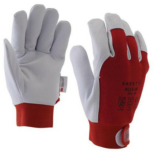 Törtfehér kecske színbőr tenyér Meleg, 3M Thinsulate bélés Köröm- és érvédő Piros pamutkézhát Tépőzáras csuklórész