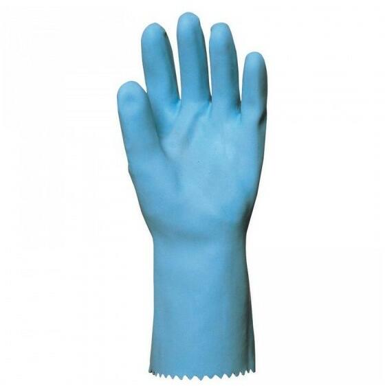 pamut anyagra mártott kék latex sav, lúg, vegyszerállóság, mikroorganizmusok elleni védelem 30cm hosszú, 1,3 mm vastag, rugalmas bőrbarát, vízbázisú DMF mentes technológia
