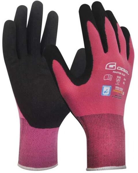 Pracovní rukavice MASTER FLEX LADY velikost 8 - blistr Pracovní rukavice MASTER FLEX LADY jsou bezešvé, lehké montážní rukavice s PU nitrilovým povrchem a s povrchovou úpravou Sandy. Nabízí vysoký komfort nošení a zajišťují optimální obratnost a bezpečné uchopení i u hladkých předmětů. Rukavice mají dobrou odolnost vůči olejům a tukům. Materiál: 97 % Nylon 3 % Elas