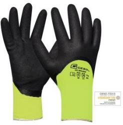 Standard: EN388 4222X, EN511 X10 CE, CAT2 Anyag: poliészter, akril, nitril homokos bevonat Felhasználási terület: téli kesztyű Kopásállóság: 4 Vágásállóság: 2 Szakítószilárdság: 2 Szúrási ellenállás: 2 a kettős hátsó anyag melegen tartja a kezet; a nedvességálló bevonatnak köszönhetően a kezek szárazak maradnak