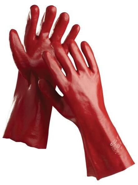 Kötött pamutkelméből varrt, PVC-be mártott kesztyű. Teljes hossza: 45 cm. Anyag: Mártás: PVC Alapanyag: pamut, kötött Leírás: Szabványok: EN ISO 21420 EN 388 (4111X) Jellemzők: Mandzsetta típusa: slip-on Mártott terület: Tele Hossz: 45 cm