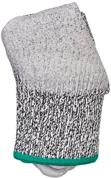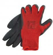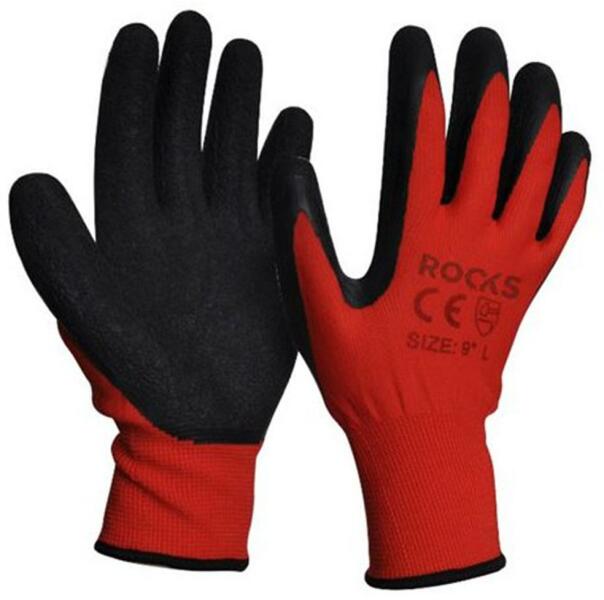 A kötött kesztyű, csúszásgátlós latexbe mártott és 10-es méretezésű. Pamut és poliészter anyagból, varratmentesen készült. A tenyere és ujjak csúszásgátlós latexbe mártottak, így könnyebben végezhető a munka. A rugalmasan kötött mandzsetta rész megakadályozza a lecsúszást. A kesztyű elsősorban a nedvesség (víz) ellen véd, de az olajok, zsírok ellen nem, í