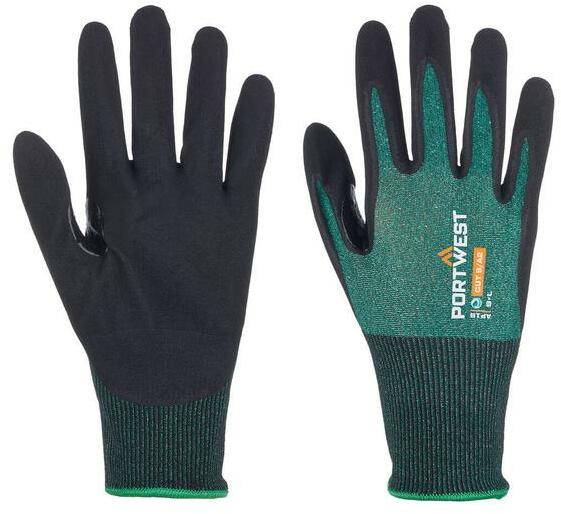 18 kötési sűrűségű E szintű vágásbiztos kesztyű, nitril hab bevonattal a kiváló tapadásért nedves és száraz körülmények között. A megerősített hüvelyk- és mutatóujj közötti terület extra tartósságot biztosít. A lélegző 18-as kötési sűrűségű bélés kiemelkedő fogásbiztonságot és kényelmet biztosít. Alkalmas érintőképernyős eszközökkel való haszn