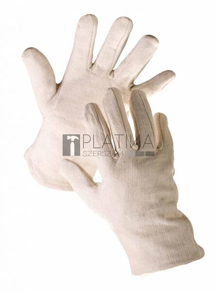 Fésült kötött pamutkelméből a "fourchette" szabás szerint varrt, mandzsetta nélküli kesztyű. Teljes hossza: 23 cm. átmérőig: 1PÁR