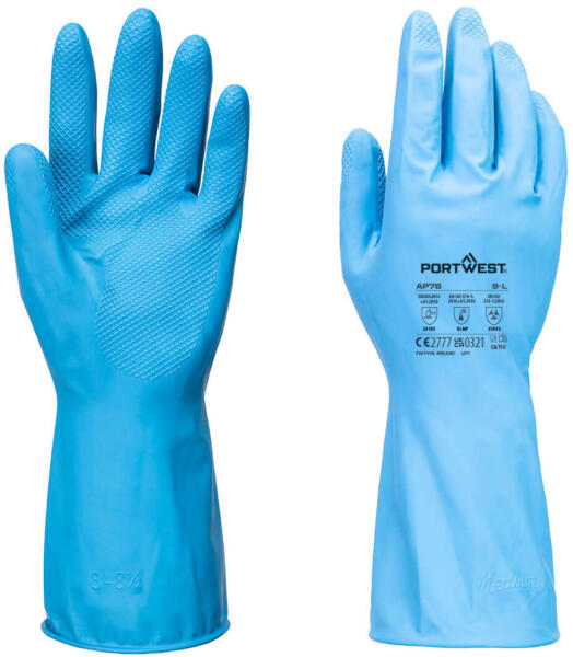 Portwest Nitrosafe kesztyű Vegyszerálló védőkesztyű, csúszászmentesített tenyérrel és kényelmes pamut belsővel rendelkezik. Ideális választás lehet a vegyipar, olajipar és az élelmiszeripar számára. Bizontságos védelmet nyújt.