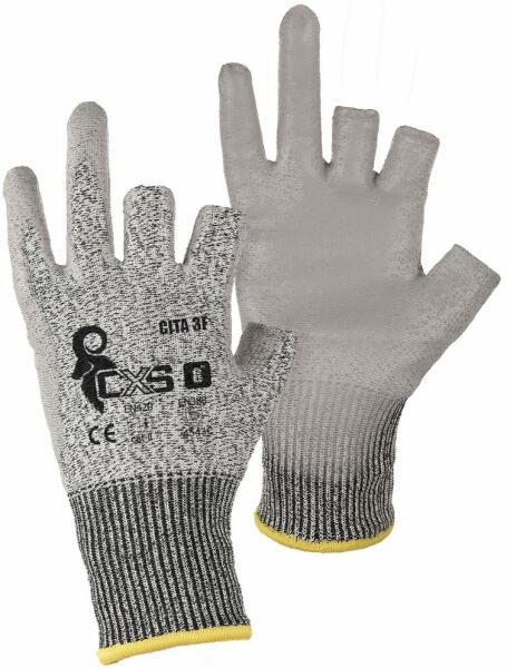 Érdekes módon kivágott vágásálló kesztyű, ami ideális a gyárakba, ahol fontos az ujjak fokozott érzékelése, használata. Kötött anyagű, varrat nélküli, 5 vágási ellenállással rendelkezik (a kesztyű megfelel ennek a szabványnak, mivel az ellenállási tesztet a tenyerében végzik). Az ujjak és a tenyér poliuretánnal vannak bevonva. Anyag összetétele: 43% 400D UHMWPE, 9