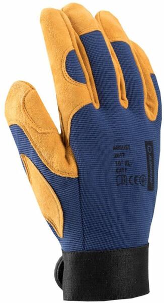 Kiváló minőségű, marhabőrből készült speciális munkavédelmi kesztyű. A tenyérben lévő párnák csökkentik a nyomást. Kék poliészterből és elasztán anyagból készül, a mandzsetta állítható szélességű és tépőzáras. 7-11 méretben elérhető. CAT. I Szabvány: EN 388, EN 420 Ehhez a munkakesztyűhöz itt letöltheted az EU által előírt szabványt. Ha nem tudod, h