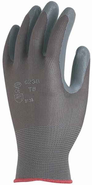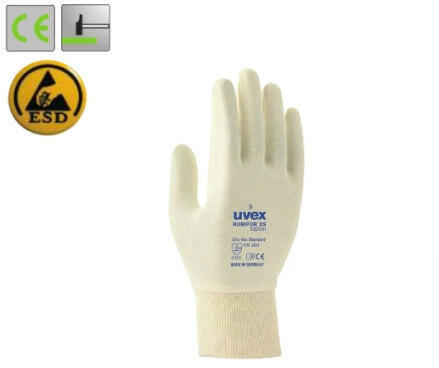 ? nagyon rugalmas, fehér pamut/elasztán alapkesztyű ? könnyű, jól szellőző NBR impregnálás a tenyéren és ujjakon ? kiváló ESD antisztatikus jellemzők: alacsony feltöltődés, elektrosztatikus kisülés (DIN EN 61340-5-1) ? rendelhető kék színben is ? méret: 7, 8, 9, 10 EU szabvány: EN420, EN388: 0121