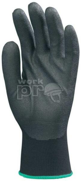 varratmentes finomkötött kesztyű (13 Gauge) PUR-bevonattal nagyon jó tapintásérzékelés - úgy illeszkedik mint egy második bőr kiváló fogás száraz és nedves tárgyakon oldószeres bevonat ipari alkalmazásokra kiváló, de alkalmas festő- és rakodómunkához is vonalkódakasztóval külömböző méretekben
