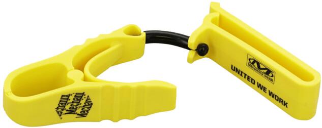 Mechanix Glove Clip Sárga kesztyűcsipesz övre akasztható szemmel. A másik végén egy kapocs van, amely a kesztyűk megtartására szolgál, ha nincs a kezében. Soha nem fogja elveszíteni őket így. A klip tömör, nagy sűrűségű műanyagból készült, amely könnyen nyitható, de elég erős ahhoz, hogy a kesztyűt a helyén tartsa.
