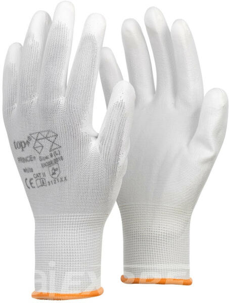Egy klasszikus precíziós szerelőkesztyű. Tenyerén PU mártott. Kedvező ár, kényelmes viselet. Tulajdonságai: Poliészter alapú. Tenyerén PU mártott védőkesztyű. Szellőző kézhát. Széles méretszortiment. Gumírozott mandzsetta. EN 388:2016 Védelmi szintek: 3121XX
