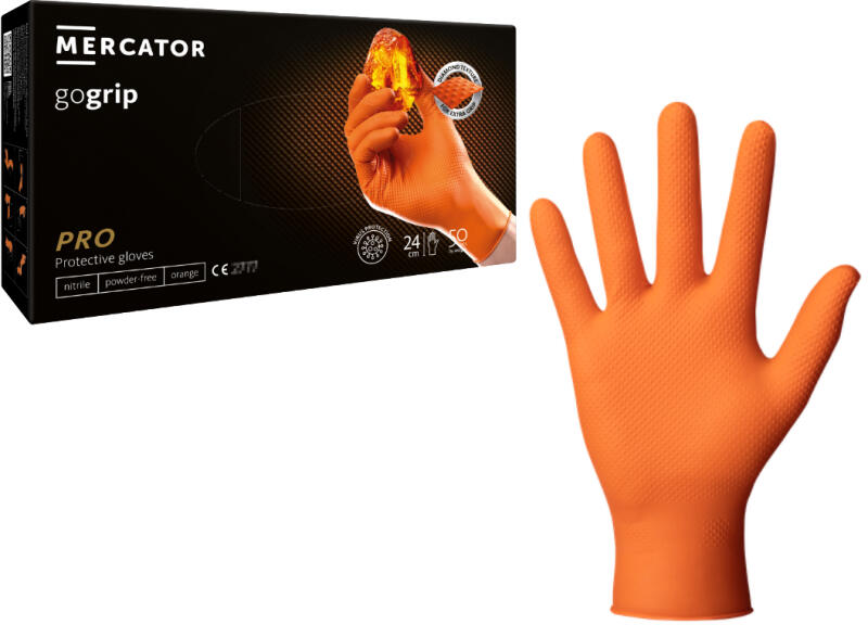 A MERCATOR® gogrip rendkívül rugalmas nitril kesztyűk kétszer olyan erősek, mint a piacon kapható standard kesztyűk. A tömör nitrilből készült kesztyű egyedi gyémánt 3D textúrájú, amely erőssé és stabillá teszi a fogást, miközben nem korlátozza a pontosságot. Az eredeti MERCATOR® gogrip szerkezetnek köszönhetően a mobilkészüléket a kesztyű levétele nélkül is k