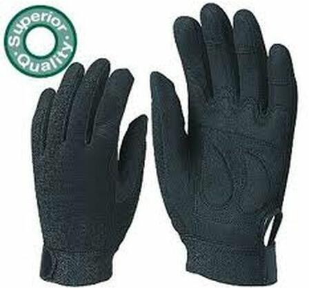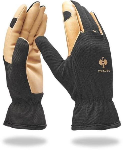 Fekete szintetikus bőr nagy igénybevételre (60% kopásálló PA, 40% könnyű PU) Szivaccsal párnázott tenyér, artéria- és körömvédő Rugalmas fekete poliészter kézhát Elasztikus mandzsetta, állítható tépőzáras szegéllyel Méret: 10