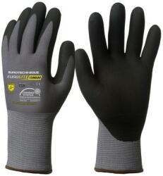 15-ös kötésű, erős szakítás- és kopásállóságú szürke nylon / spandex tenyerén fekete szellőző mikrohabosított nitrillel mártott szellőző kézhát, gumírozott mandzsetta könnyű, kiemelten komfortos, teljesen kézre simuló formai kialakítás, tenyerén és a kézháton is biztosított szellőzéssel Öko-Tex® minősítés EU szabvány: EN420, EN388:2016 4131x