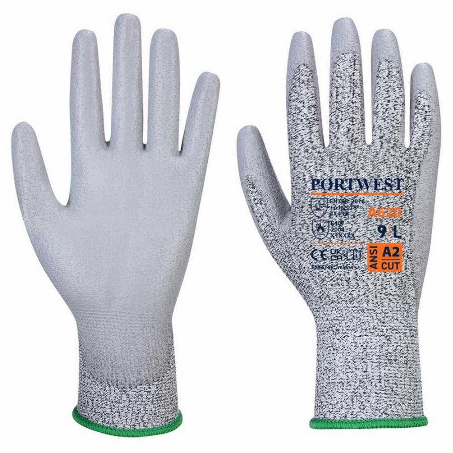 Kényelmes és ellenálló vágásbiztos munkavédelmi kesztyű PU (poliuretán) tenyérbevonattal, ami jobb fogásbiztonságot és szellőzést, valamint fokozott kopásállóságot biztosít. B szintű vágásbiztonság.