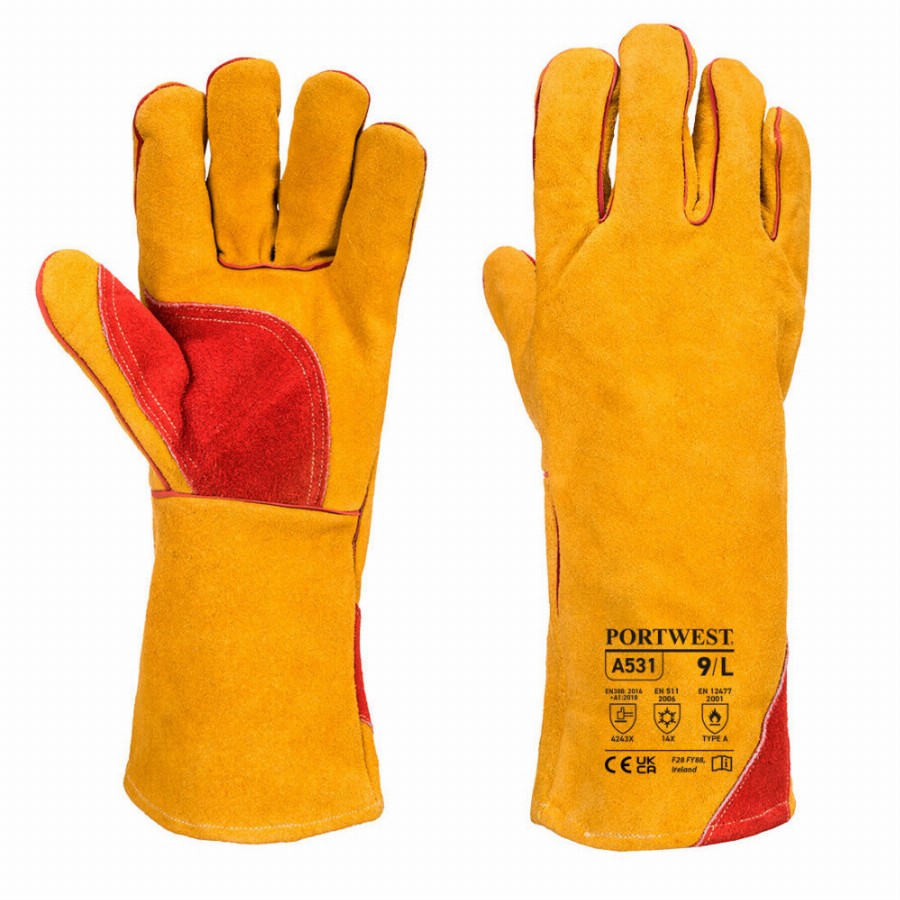 Az A531 erősített téli hegesztő kesztyűt hideg körülmények közötti munkavégzésre. Polár bélésnek köszönhetően kiválóan szigetel. Aramid szálas varrások a hosszú életartamért. CE minősítés Polár béléssel 14 inch hasított marhabőr kesztyű Ideális hegesztéshez és fémkezeléshez Kiváló minőségű bőr hegesztő kesztyű EN12477 Type A hegesztésvédelem Megerő
