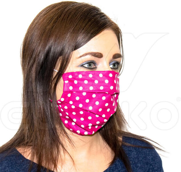 Többször felhasználható mintás textil alapanyagból készült szájmaszk . A pamut anyagból készült játékos mintázatú szájmaszkok olcsóbbak az egyszer használatosaknál, mivel könnyen kimoshatóak, fertőtleníthetőek, így többször felhasználhatóak .