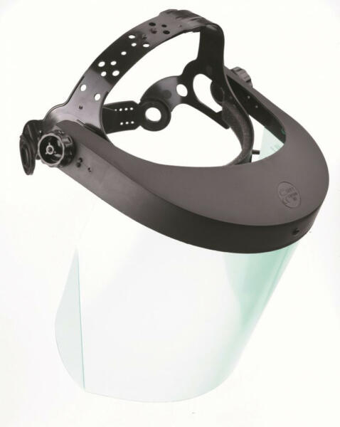 Arcvédő fizikai sérülések elkerülésére Komplett arcvédőt szállítunk, de a látómező Külön is rendelhető. . Egész arcot védő pajzs. A látómező polikarbonátból készült. A látómező mechanikus védelmi szintje: F . Állítható homlokpánt, csere látómező rendelhető hozzá.