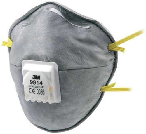 3M 9914 részecskeszűrő légzésvédelmi pormaszk szeleps változat FFP1, Aktívszenes, részecskék és irritatív szerves gőzök ellen EH érték alatt - Por és aeroszolok ellen az LMK/MEH 4 szereséig, - kellemetlen szagú gázok és gőzök ellen az LMK-n belül védő, - kilégző szeleppel ellátott félálarc, FFP1.