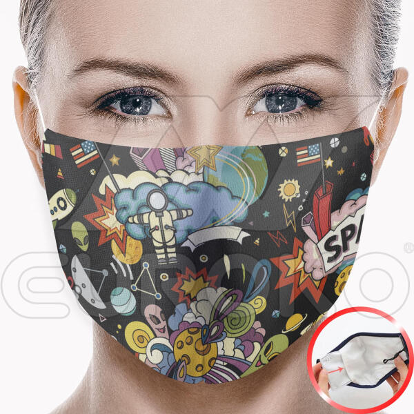 ÚJ "Világűr" mintás szájmaszk, cserélhető / behelyezhető szűrős kivitelben. Egyszerre véd és öltöztet! Emelkedjen ki a tömegből és hordjon stílusosan egyedi mintával készült textil szájmaszkot, amely a kialakításának köszönhetően akár aktív szenes szűrővel is használható! Figyelem! A termék 1db cserélhető szűrőt tartalmaz! Cserélhető szűrő vásárlása it