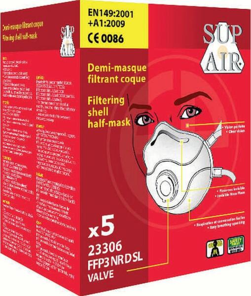 SupAir FFP3SL légzésvédő pormaszk A legkiválóbb megoldások egyike a koronavírus elleni védekezésnek. Cikkszám: 23305 - mérgek kategóriájába sorolt szilárd és folyékony részecskék ellen (pl. króm, mangán, nikkel, kadmium, platina, strichnin, enzimek, vírusok, gyógyszergyártás, elem és akkumlátor feldolgozás)- összehajtható paneles forma, higiénikus: minden darab kül