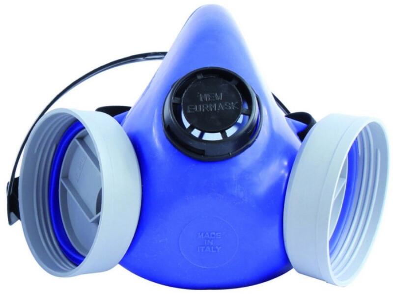 Puha, bőrbarát polikloropén gumi anyagból, csavarmenetes csatlakozású, elforgatható szűrőbetéttartó, melynek segítségével szabályozható a látótér szöge is, állítható gumipánt biztonsági rögzítővel és hátsó fejkosárral, DUE (22102): iker belégző-, egy...