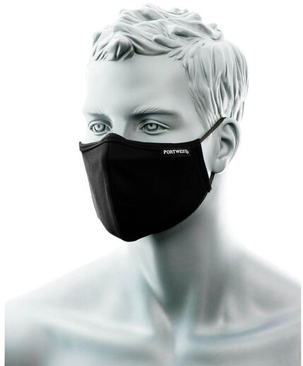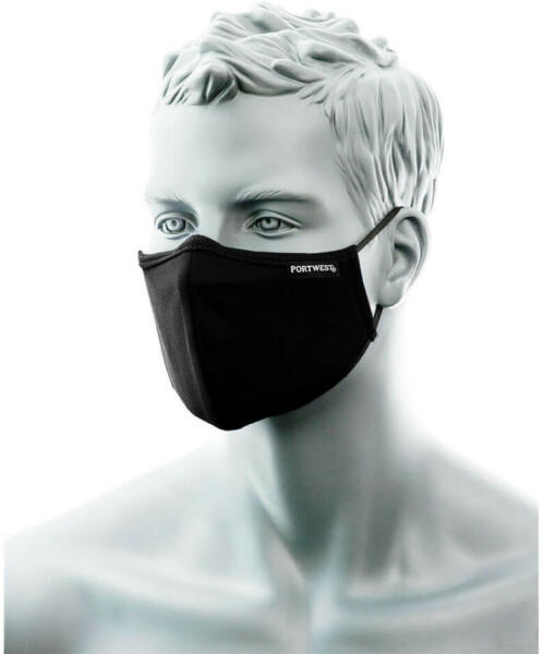 Háromrétegű, újrafelhasználható arcmaszk, antimikrobiális bevonattal és orrnyereg borítással. Elpusztítja a baktériumok 99,9%-át és számos szagot okozó mikroorganizmust, amelyek felhalmozódhatnak a rostokban a bőrrel való érintkezés és a mosás során. Az állítható orrnyereg borítással megakadályozza a szemüveg párásodását. Rugalmas fülhurok állítóval a tökél