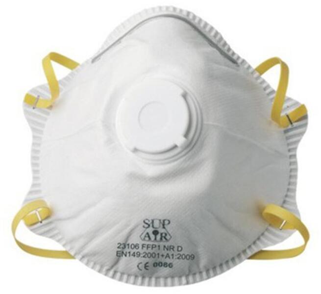 inert porok, valamint nem veszélyes szilárd és folyékony részecskék ellen puha, polietilén habból készült belső orr- és arcrész, megerősített PE orrcsipesz, felhelyezés két latex mentes pánttal külső pp-SMS, belső poliészter réteg, elektrosztatikus polipropilén közszűrő, kilégzést segítő szeleppel alacsony légzési ellenállás, eltömődés nélküli, hosszabb idej