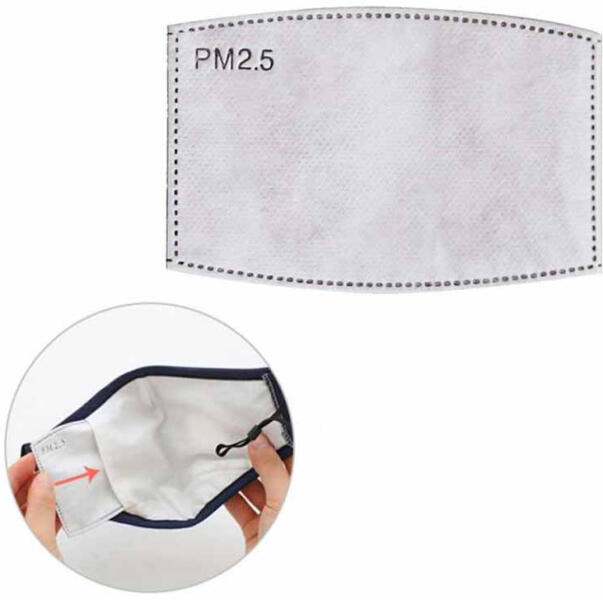 5 rétegű, aktív szén réteggel rendelkező szűrő, 2.5μm-ig. A cserélhető filter alkalmas az arra alkalmas szájmaszkokba való behelyezéséhez.