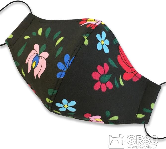 Kalocsai mintás textil maszk, állítható fülpánttal, orrklipsszel, szűrőbetéttel. Külső és belső fele bőrbarát, OEKO-tex minősítésű 100% pamut. Kézzel készült magyar termék, minőségi anyagokból. Tökéletesen az arcra illeszkedik a formája. Női méretben. (Figyelem! Nem orvosi maszk! Viselése viszont jelentősen csökkentheti az allergiás, a bakteriális és vírusfert