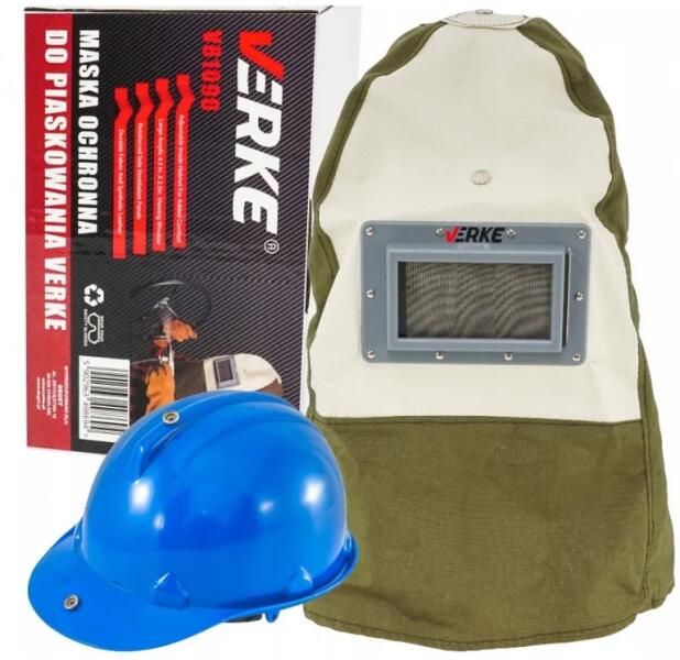 Homokfúvó maszk fejvédő sisak nagy és erős kitekintővel és kivehető fejvédő sisakkal. Ideális védelmet biztosít az arcnak, a szemnek, és orrnak a homokszemcsékkel szemben. 3 db beépített szellőzőnyílás minimalizálja a lencse párásodását és biztosítja a jó komfort érzetet. A kivehető fejvédő sisak állítható, valamint a homlokrésznél levehető párnázott szöv