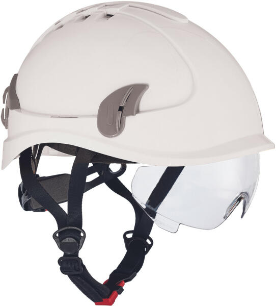 Könnyű, , magasban végzett munkára alkalmas PC védősisak szellőző kivitelben. Speciális konzolokkal felszerelt a kiegészítők rögzítéséhez. Rövid szemellenzővel készült, mérete racsnis kerékkel állítható 53-66 cm között. 6 pontos textiheveder, egyedi, 4 állású mélységbeállítás, 4 pontos állszíj. tömeg: 460 ghőmérséklet: -30°C-tól + 50°C-igélettartam: 5