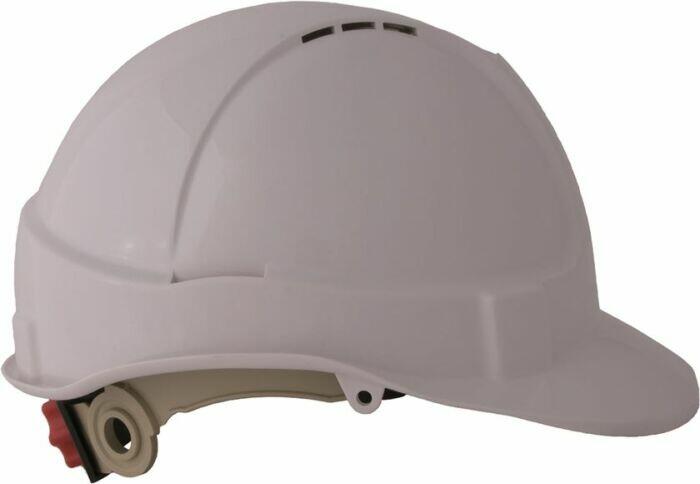 Procera Bratek-3 szellőző munkavédelmi sisak állszíjjal, fehér Szellőzővel ellátott sisak, kiváló ütéselnyelő tulajdonságokkal, mechanikai sérülések ellen. Állszíjjal felszerelt. Állítható a tarkó részen. Csatornás kialakítása megakadályozza a víz csöpögését. Üzemi hőmérséklet tartomány: -20 és + 50 Celsius fok között. Alkalmazható egyéb védőfelszerel