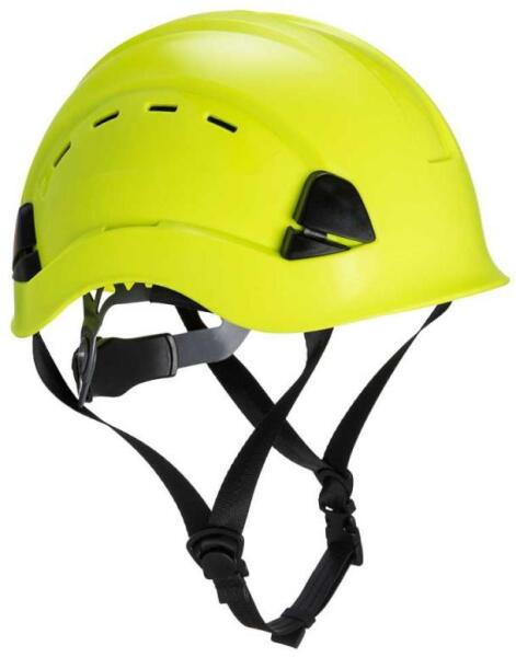 Ipari védősisak ultrakönnyű műanyag burkolattal. 4 ponton rögzített, izzadságpántos, formázott hámot tartalmaz, állítható méretű csattal (50-60 cm). Perforált oldalsó burkolat az extra szellőzésért. Könnyen tisztítható és ultrakönnyű a hosszan tartó kényelmes viselet érdekében. Könnyű és kényelmes 4 pontos műanyag felfüggesztésű heveder a viselő kényelme, b
