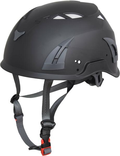 FOX Biztonsági fejvédő, fekete. Ajánlott hegymászáshoz, karbantartásokhoz, mentő akciókhoz és magasban való munkavégzésekhez. Praktikusan állítható állszíjjal és tíz szelőzést szolgáló nyílással. Megfelel az EN 12492:2012 szabványnak.