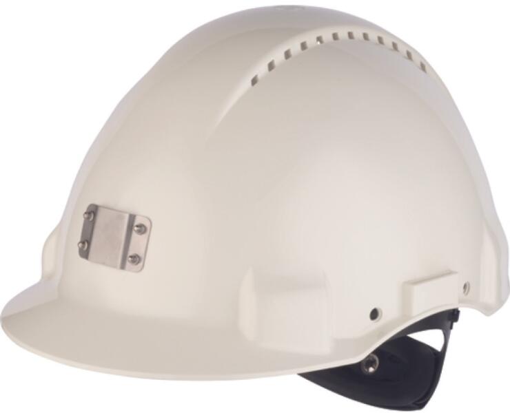 HD poletilén sisakhéj fehér színben, -20°C és +50°C között használható, 440 V váltakozó feszültségű villamos vezeték érintése elleni védelem, hat ponton rögzített, állítható sisakkosár (53-62 cm), nedvszívó szivacsos izzadságszalag, hallásvédőkkel ...