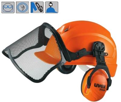 Uvex pheos forestry favágó szett (narancs sisak, rozsdamentes acélháló uvex 3000H fültok) uvex pheos forestry szett:- alaktartó, - kiváló fényáteresztő tulajdonságú, - rozsdamentes acélháló, - repülő részecskék, - szilánkok elleni védelemmel - narancs védősisak 3 állítható szellőzőnyílással, racsnis fejkosárral - nagy zajcsillapítású uvex 3000H fültok (f