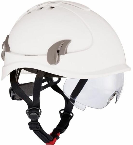 Szállítási idő: 1-2 nap Magas minőségű, ABS alapanyagból készült munkavédelmi sisak, mely ellenáll olvadt fémnek, és oldalütközésnek is. A védősisak állítható, 6 pontos textil sisakkosárral (56-63 cm), és az egyszerű beállítást lehetővé tevő, gyorsbeállító racsnis megoldással rendelkezik. Tartozéka az állszíj, és a PW56 cikkszámú látómező (ez utóbbi kü
