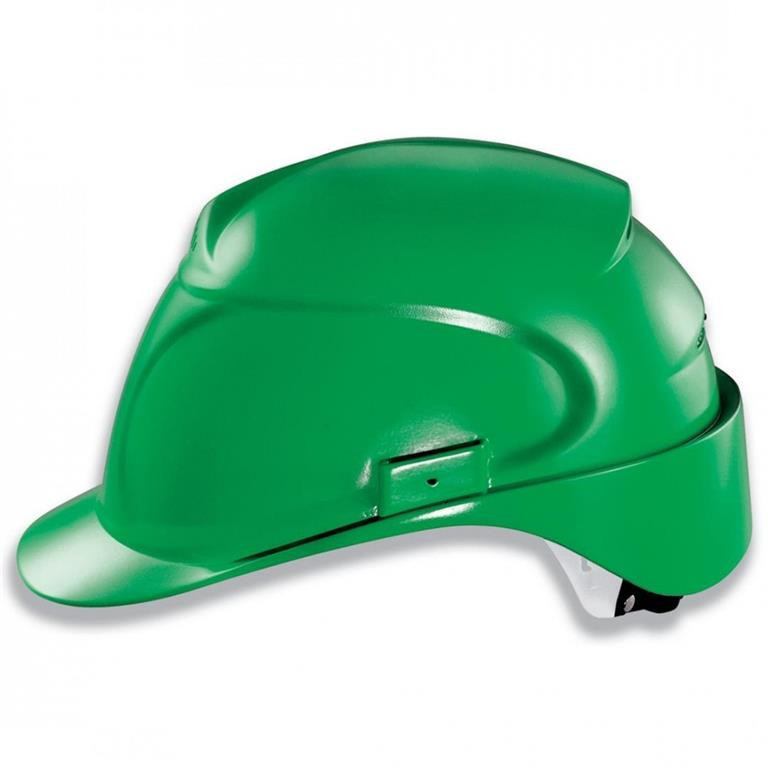 UVEX AIRWING B-WR ZÖLD SISAK: • erős, könnyű polietilén sisakhéj • kiváló komfortérzet nagy felületen (300 mm2) történő szellőzéssel: egy sor nyílás elöl és két sor hátul, melyek külön-külön zárhatók • gyorsbeállítós, 6 ponton felfüggesztett textil sisakkosár, fokozatmentesen szabályozható körméret (52-61 cm) • a kosár teljes hosszán végig érő, cser