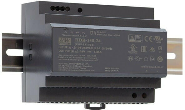 Mean Well HDR-150-24 DIN sínre pattintható tápegység Vin: 85-264VAC 120-370VDC, Vout: 24 VDC (0-6,25A), P: 150W, 105 x 90 x 54,5mm ( HDR-150-24 )