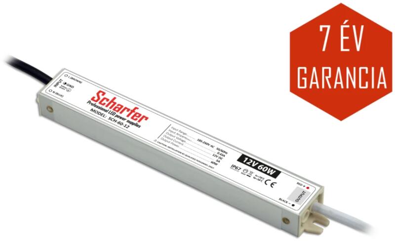 Termék részletek60W - átmenő teljesítmény. - védelemmel. AC 170-250V a bemeneti feszültség. Kimenete: DC 12V, 5A (egyenáram). Mérete: 222x29x21mm mm. Garancia: 7 év. A Scharfer egy fémházas, IP67-es védelemmel rendelkező igen megbízható 86%-os hatásfokú slim (vékony keskeny, hosszú) tápegység. Rövidzárlat, túlterhelés és túlfeszültség elleni védelemmel rendelkezik.