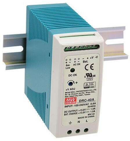 Tápegység UPS funkcióval. - Bemeneti feszültség: 90 - 264 VAC, 127 - 370 VDC - Kimenet: 13,8 VDC / 1,9A -Töltés: 13,8 VDC / 1A - Teljesítmény: 40W - Rövidzárlat, túlfeszültség, túlmelegedés és túlterhelés elleni védelem - Teljes lemerülés és ellentétes kapcsolás elleni védelem - DIN sínre szerelhető - Méretek: 40 x 90 x 100mm [H × SZ × M]