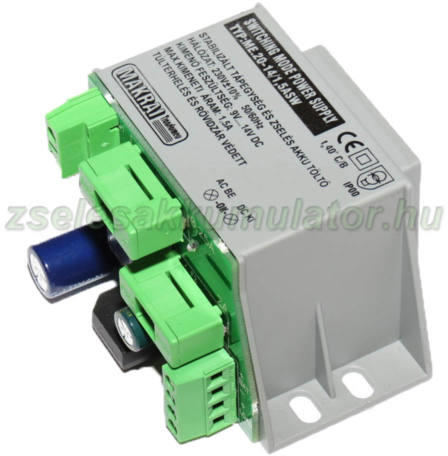 Vigyázat! A készülék feszültség alá helyezése után a hálózati csatlakozó érintés életveszélyes! A védőföld használata érintésvédelmi okokból kötelező! A megfelelő beüzemelést elektromos szakember végezze! Csak beépítve használható!Bemenet: 230VAC-50 Hz (transzformátorral) Kimenet: 12V…13,8V/1,5A (szabályozható) Védelmek: rövidzárlat, túlterhelés, túlmel