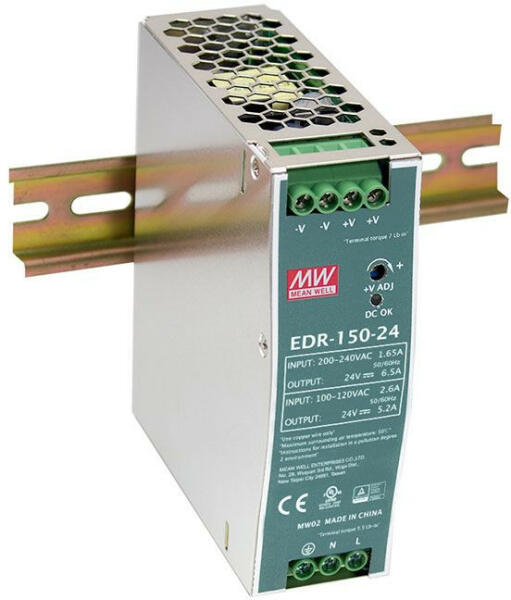 Termék részletekMean Well EDR-150-24 DIN sínre szerelhető kapcsolóüzemű tápegység Vin: 90-264 VAC/120-370 VDC, Vout: 24 VDC (0-6,5A), P: 150 W, 40 x 125,2 x 113,5 mm ( EDR-150-24 )