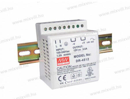 Termék részletek- Típus: impulzusos - Teljesímény: 42W - Kimeneti feszültség: 12V DC, 10.8-13.2V DC - Kimeneti áram: 3.5A - Tápfeszültség: 85-264V AC, 120-370V DC - Szerelés: DIN - Méret: 93 x 78 x 67mm - Védelem: - túlfeszültség ellen - túlmenegedés ellen - túlfeszültség ellen - zárlat ellen - Kimenetek száma: 1